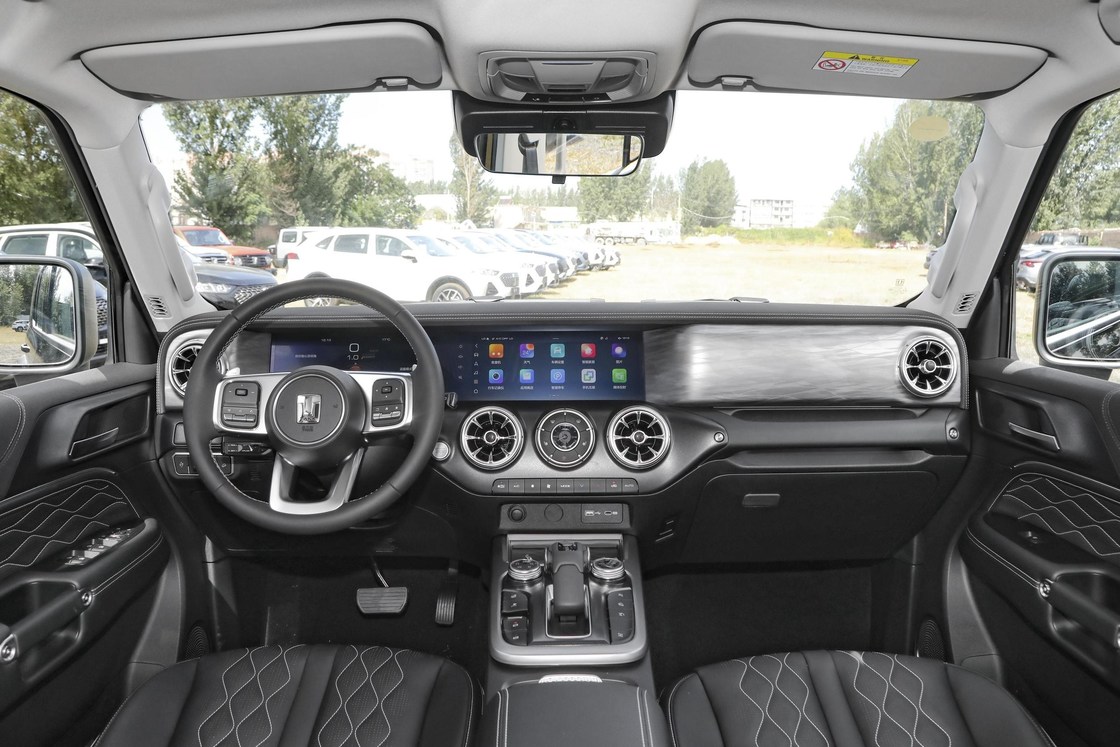 Классическая форма квадратной коробки никогда уставшая. 3 толстых прокладки отделки хрома, который побежали через передний гриль. Размером с кулак логотип танка и круглые фары СИД на обеих сторонах устанавливают с одина другого, который смотрит очень узнаваемым. К тому же, этот автомобиль оборудован с фарами СИД матрицы как стандарт, и фары имеют приспособительную повсюду светлую функцию.